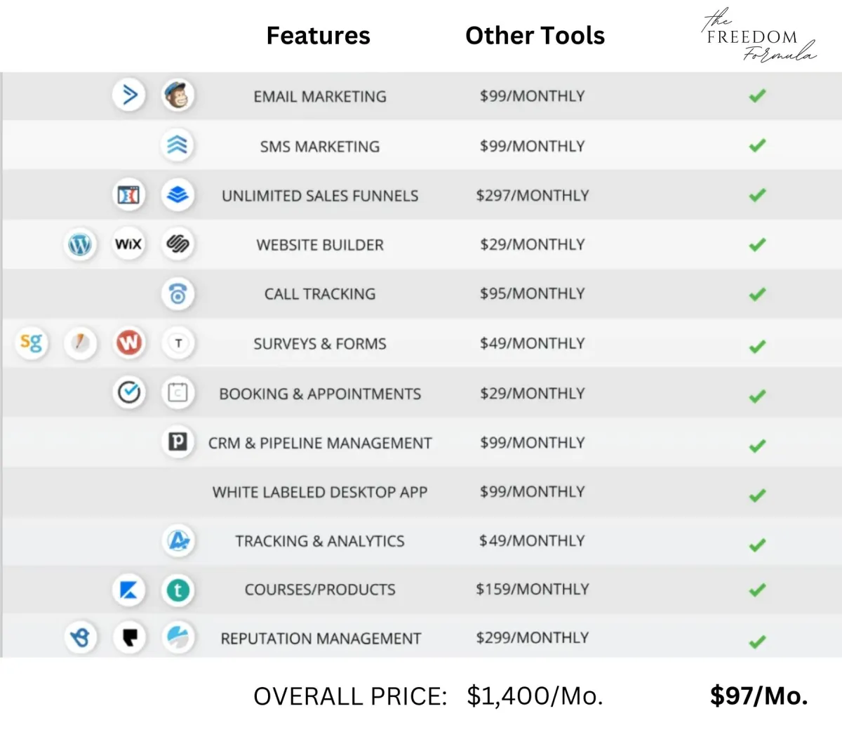 You will receive the course itself, a free community of like minded business owners of all experience levels ready to help, 1 zoom a week with our community, and access to myself if you have any questions. The Freedom Software is an additional $97 per month. And guess what? The first 14 days are on us - absolutely free! Not only that, the software comes with 24/7 customer support to ensure you are able to utilize all of it's amazing capabilities.